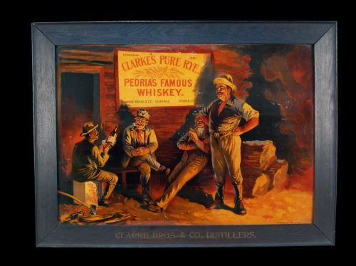 Clarke's Pure Rye Reverse Decal Under Glass Ad for Whiskey 29 x 39