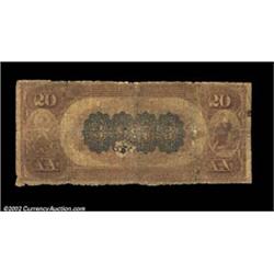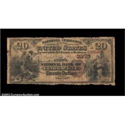 Clarksville, TX - $20 1882 Brown Back Fr. 497 The First NB Ch. # 3973This was one of the smallest issuers in the state considering the bank's longevity, with the census standing at just two large and one small examples known. Our records disclose only one appearance from here of any kind at public sale, coming when we sold this very note back in 1993. The only other large example from here resides in the former Philpott holdings, now ensconced in a major foundation's holdings and unlikely ever to return to the market. This charter was missing from the Everson, Irish, and Ivy holdings, and this offering may represent the only chance that collectors have to obtain any example from here. Well circulated but intact Good-Very Good, with some fraying and pinholes, but if real rarity is any guide, likely to realize a solid four figure price in the range of... Important notice: We expect to be auctioning lots at the rate of 200-250 per hour. Sometimes eBay Premier live bid software cannot keep up with that pace, so we strongly recommend that you place a realistic proxy bid now as insurance to avoid disappointment. Also please note that all Heritage/CAA lots purchased through eBay Premier carry a 20% Buyer's Premium. Please make sure you read the Terms and Conditions.