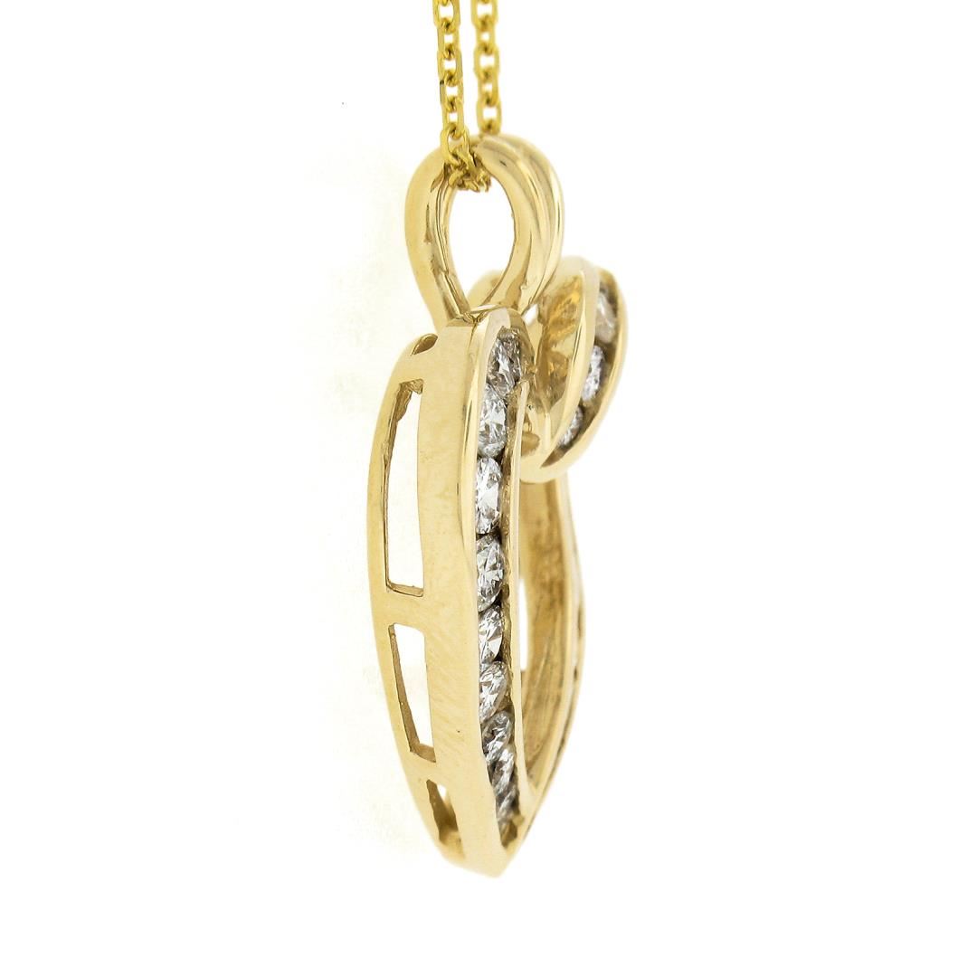 A solid 14k yellow gold heart pendant necklace, with 25 round brilliant cut natural diamonds (G/H - SI1/SI2 ; 1ctw). Adjustable 16 to 18 inch cable link chain, 5.41 grams total weight, pendant measures 20.80x21.50mm.