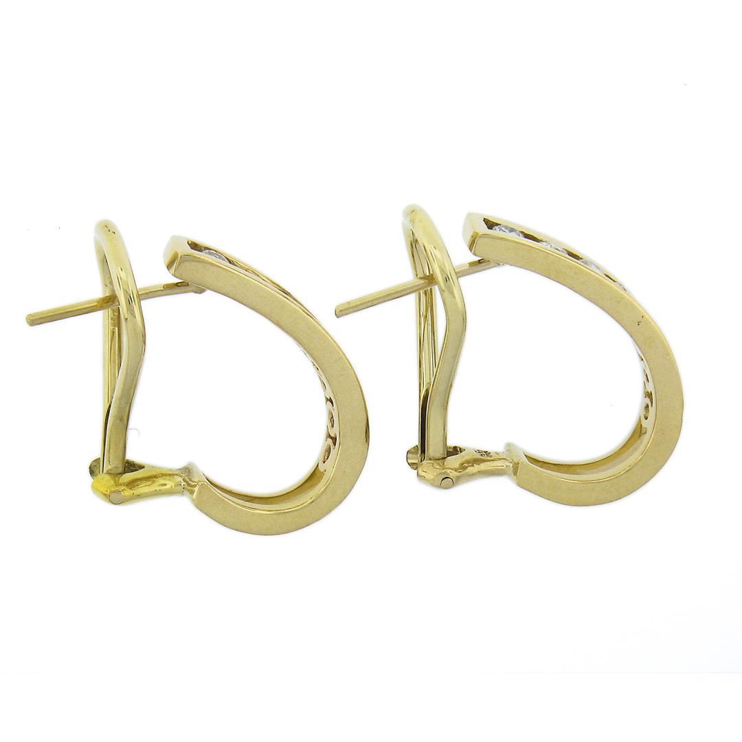 A solid 14k yellow gold cuff earrings, with 14 round cut natural diamonds (G-I - SI1/SI2 ; 0.42ctw). The earrings measure approximately 19.2x3.6mm and weigh a total of 4.49 grams.