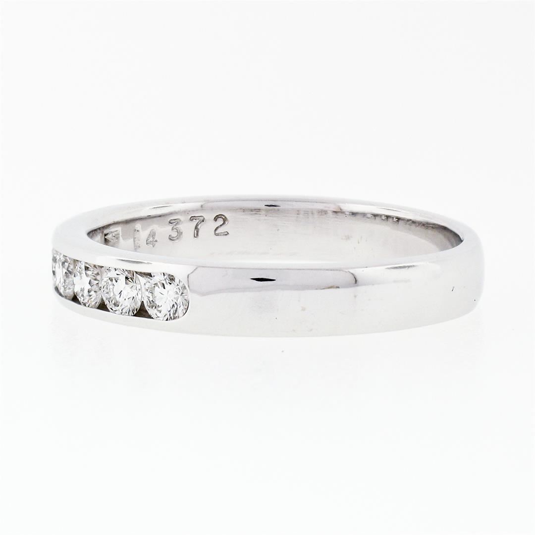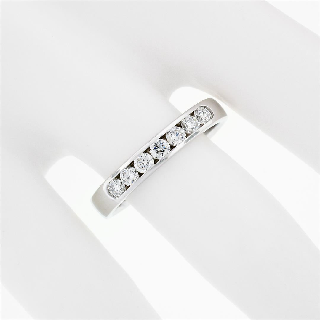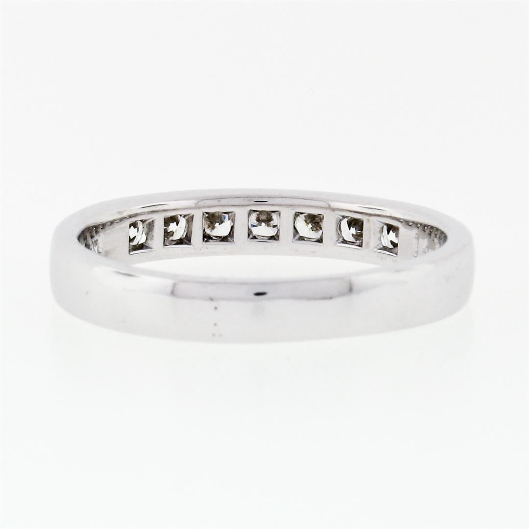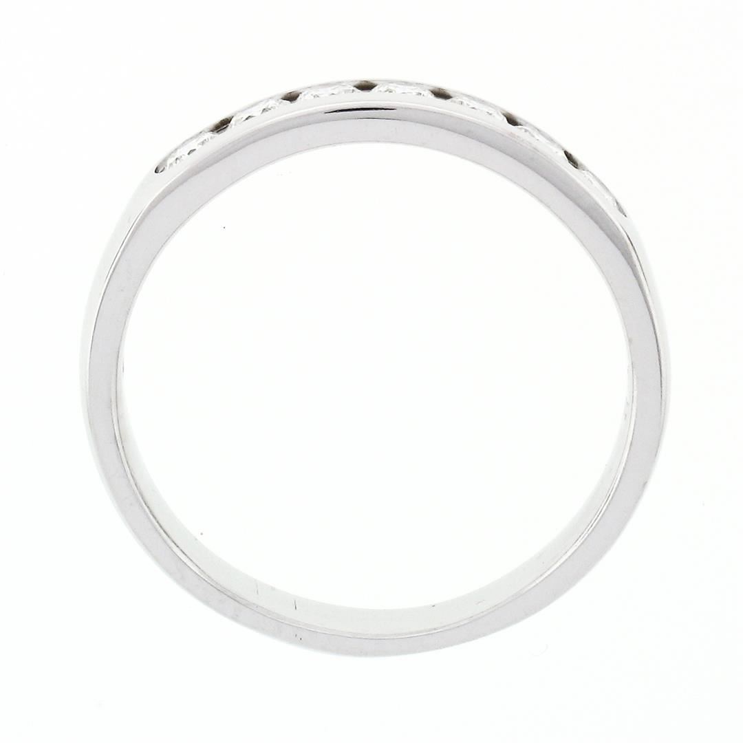 A solid 14k white gold stackable band ring with 7 round brilliant cut natural diamoinds (E/F - VVS1/VVS2; 0.50ctw). The ring is size 8.5, weighs a total of 3.66 grams, and measures 3.61mm wide.