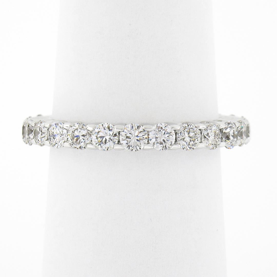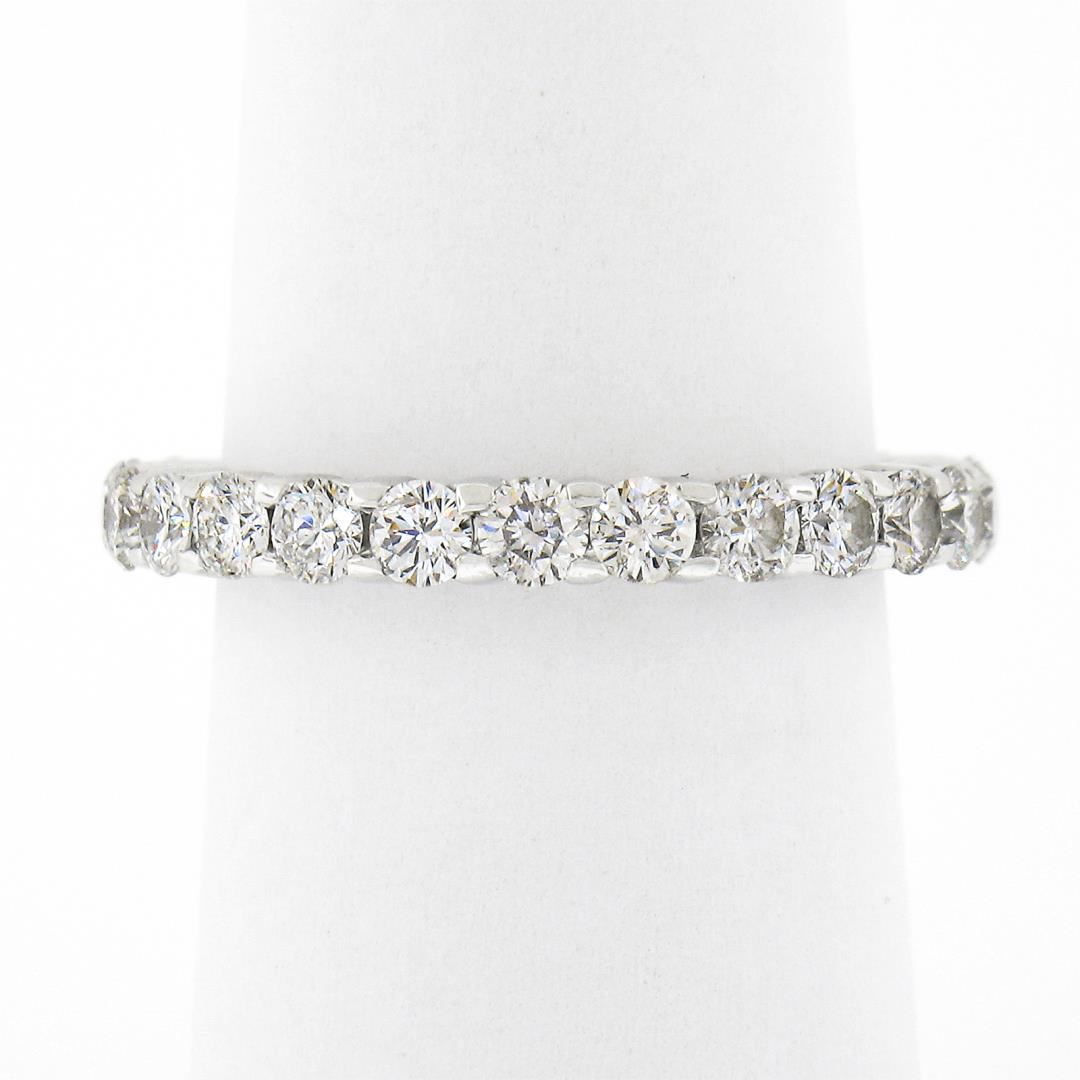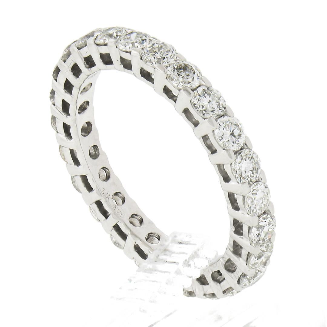 a solid 14k white gold eternity band ring, with 25 round brilliant cut natural diamonds (G/H - SI1/SI2 w/ a few I1 ; 1.60ctw). The ring is size 6.0, weighs a total of 2.92 grams, and measures 2.75mm wide.
