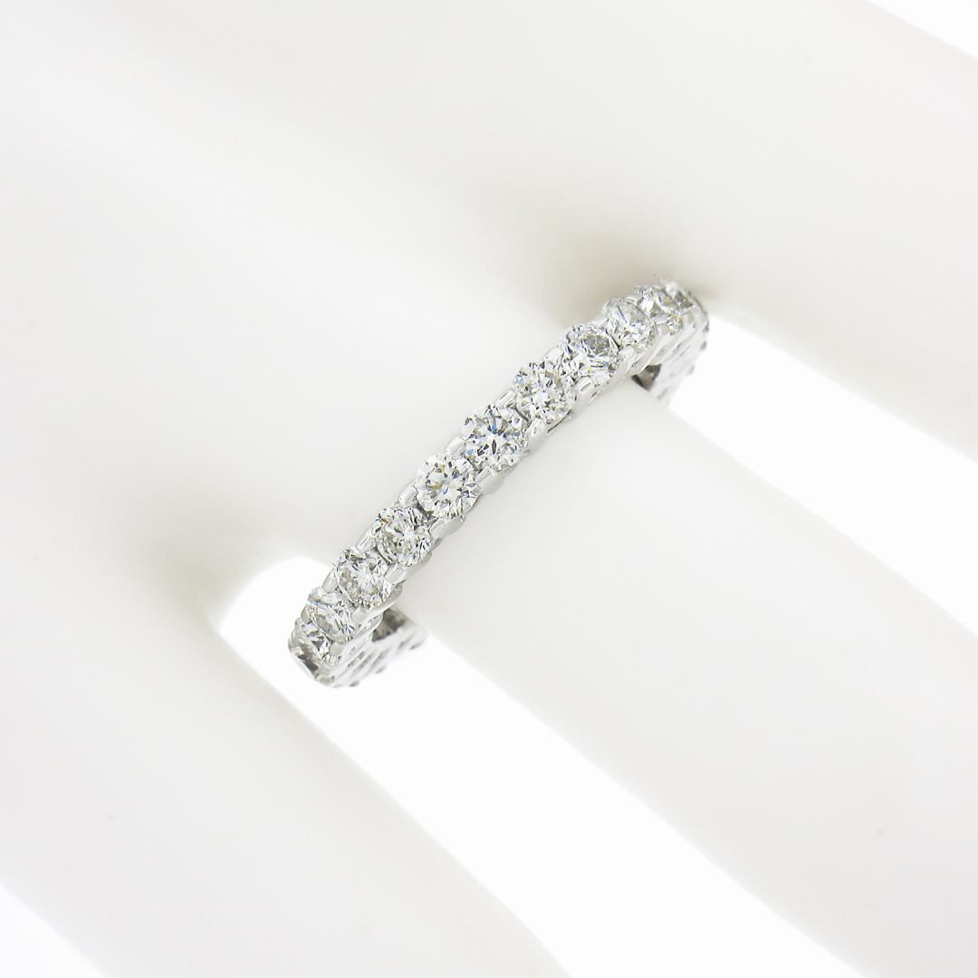 a solid 14k white gold eternity band ring, with 25 round brilliant cut natural diamonds (G/H - SI1/SI2 w/ a few I1 ; 1.60ctw). The ring is size 6.0, weighs a total of 2.92 grams, and measures 2.75mm wide.