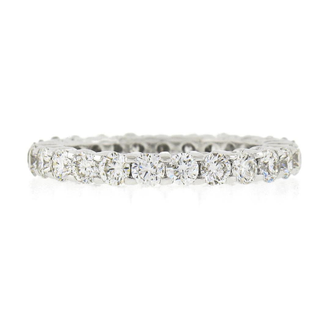a solid 14k white gold eternity band ring, with 25 round brilliant cut natural diamonds (G/H - SI1/SI2 w/ a few I1 ; 1.60ctw). The ring is size 6.0, weighs a total of 2.92 grams, and measures 2.75mm wide.