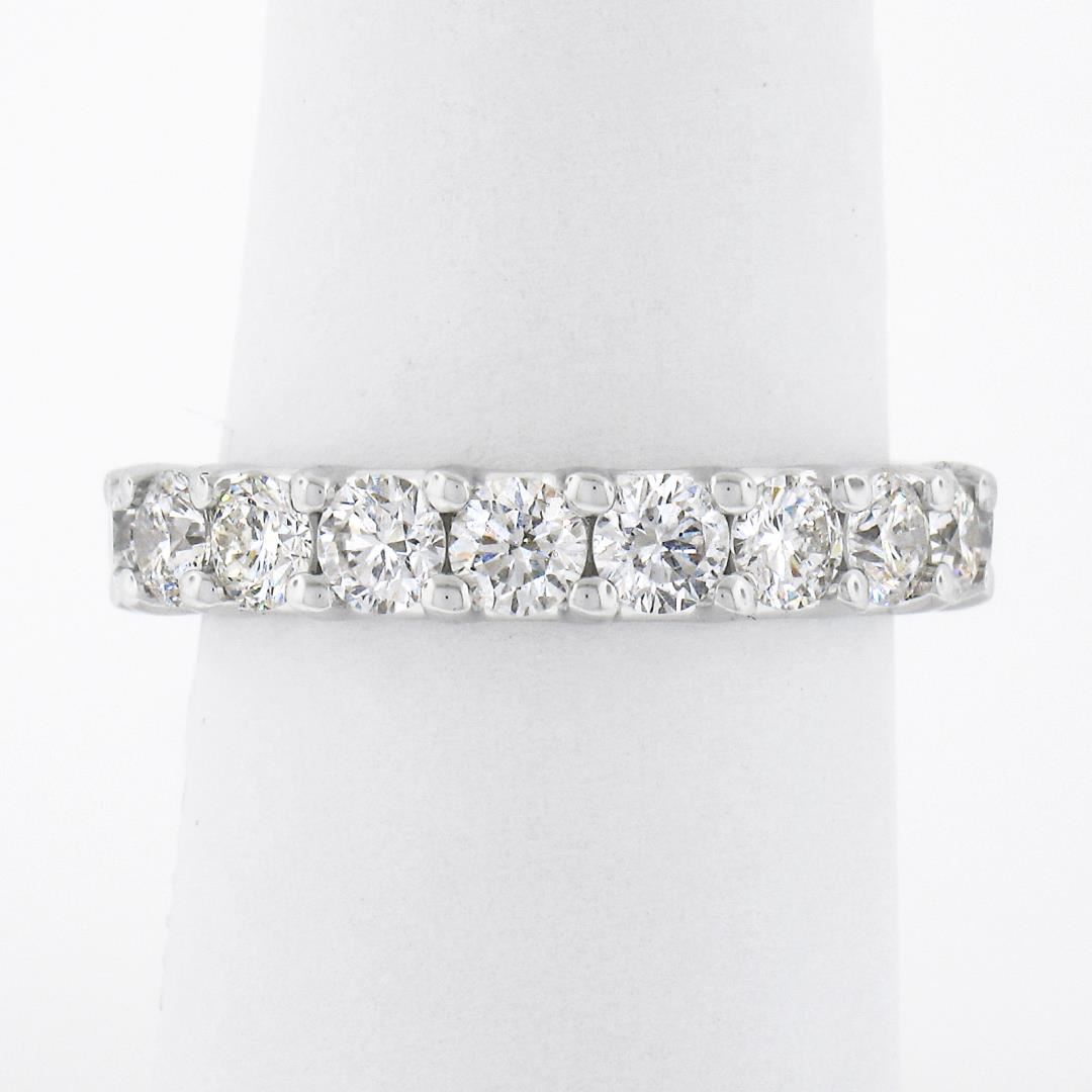 A solid 14k white gold eternity band ring, with 19 round brilliant cut natural diamonds (G/H - SI1/SI2 ; 2.94ctw). The ring is size 8.0, weighs a total of 3.10 grams, and measures 4mm wide.