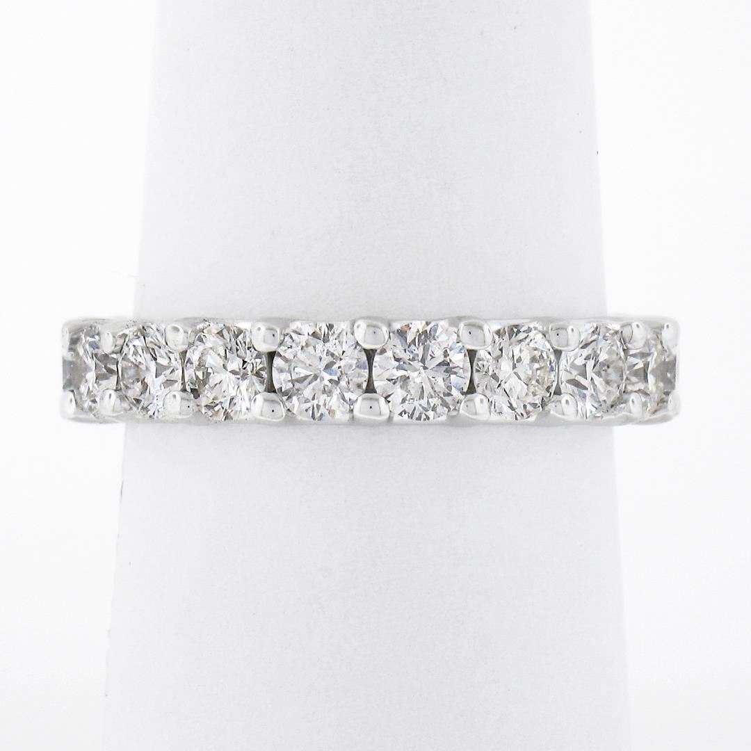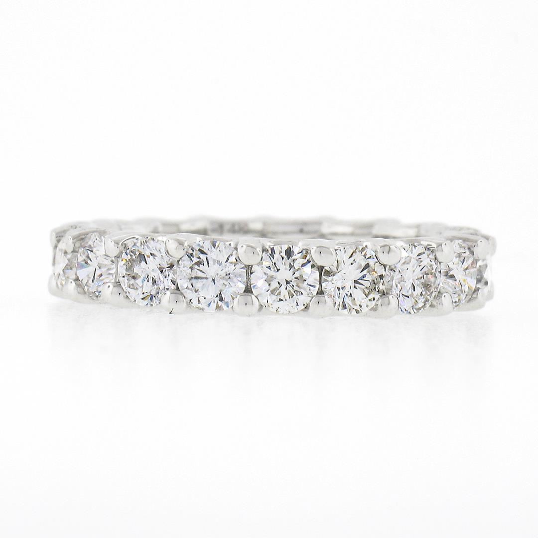 A solid 14k white gold eternity band ring, with 19 round brilliant cut natural diamonds (G/H - SI1/SI2 ; 2.94ctw). The ring is size 8.0, weighs a total of 3.10 grams, and measures 4mm wide.