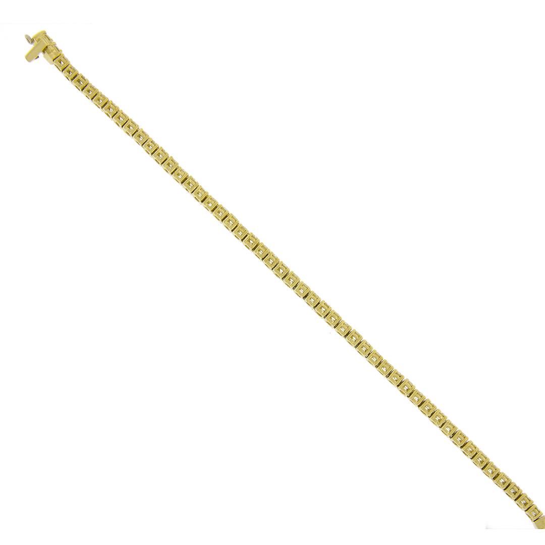 A solid 18k yellow gold tennis bracelet. with 50 round cut natural dimaonds (G/H - VS1/VS2 Few SI ; 7.50ctw ). It weighs a total of 16.65 grams, measures 3.7mm wide, and measures 7.0 inches in length.