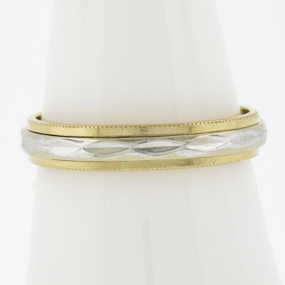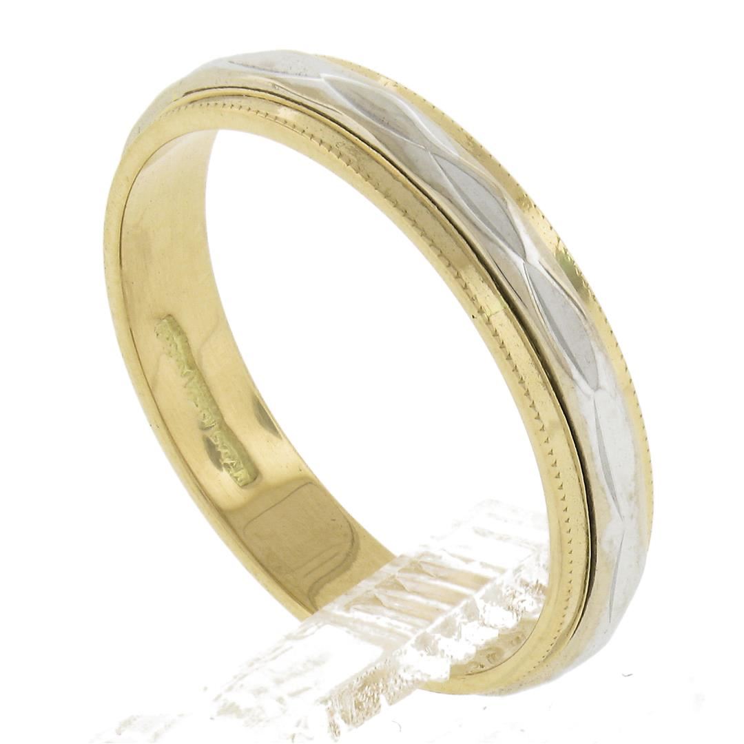 Classic 18k TT Gold Faceted Center w/ Milgrain Eternity Stackable Band Ring
