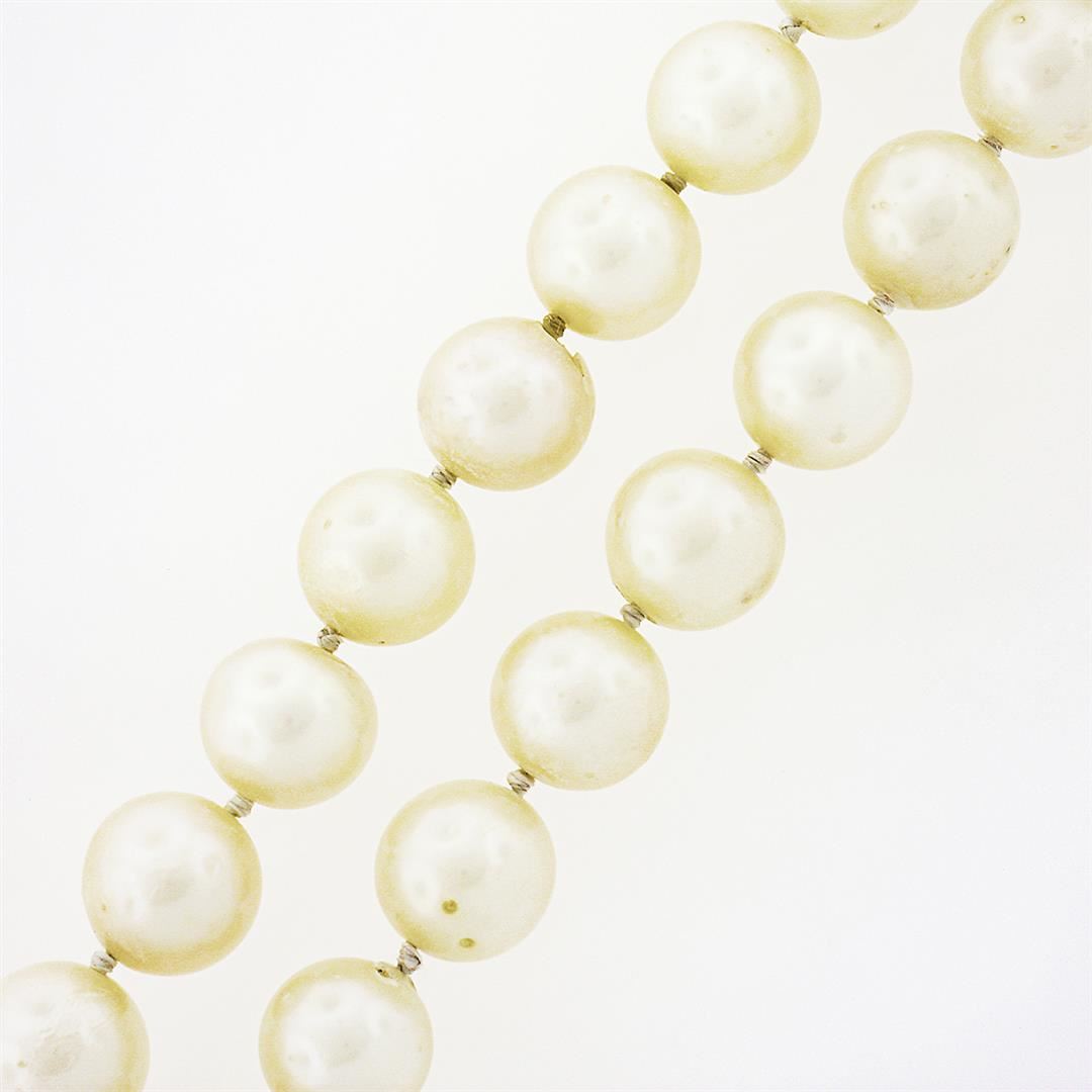 A single strand necklace, with 84 round shape cultured pearls (8mm to 8.5mm each). 30 inch slip on bead strand link chain, 70.93grams total weight.