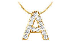 Thirteen brilliant-cut round diamonds are prong-set in a timeless classic letter A to wear your personality in a more simple yet elegant way. Made in 14K yellow gold this initial pendant has a total weight (TDW) of 0.15 ct.