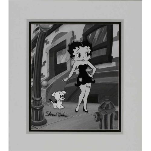 <B>Classic Betty Boop Limited Edition Hand-Painted Cel #10/15 Original Art (King Features Syndicate/Fleischer Studios, 1994).</B></I> This hand-inked, hand-painted limited edition cel features the glamorous Betty Boop, and her cute and cuddly puppy, Pudgy. Set against a lithographic background, this edition is number 10 of an edition of 15. The art has an image area of 12" x 10" and the condition is Excellent. Includes a certificate of authenticity. Signed by Shamus Culhane at the lower right.