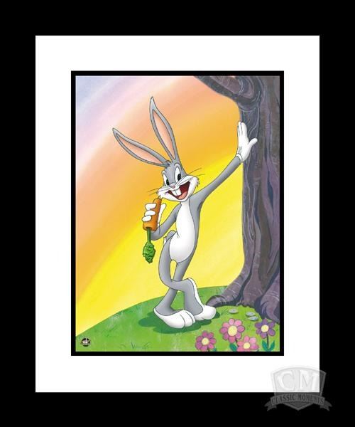 This framed limited edition 16x20 giclee is entitled “Classic Bugs.†This image was taken from Robert McKimson’s famous pose of Bugs, leaning against a tree with a carrot poised for chomping. The image was originally drawn in 1943 by McKimson who, during