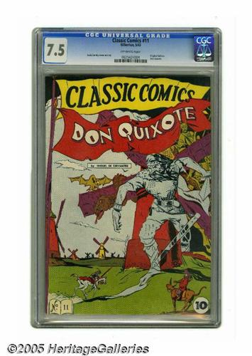 <B>Classic Comics #11 Don Quixote (Gilberton, 1943) CGC VF- 7.5 Off-white pages.</B></I> Original edition. Overstreet 2005 VF 8.0 value = $506. CGC census 2/05: 1 in 7.5, none higher.
