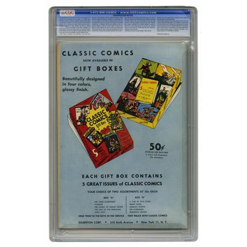 <B>Classic Comics #15 Uncle Tom's Cabin - Original Edition (Gilberton, 1943) CGC VF 8.0 Off-white pages.</B></I> Harriet Beecher Stowe's powerful 1852 novel of slavery abolition and tolerance between races gets the <B>Classic Comics</B></I> treatment, with art by Rolland Livingstone. This first edition is the "green root" variant -- notice how the large tree root goes from green on one side of the price circle to brown on the other! A very attractive copy, featuring vivid cover colors and an overall fresh appearance. Overstreet 2006 VF 8.0 value = $406. CGC census 3/06: 1 in 8.0, none higher.