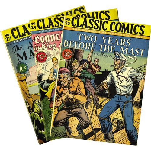 <B>Classic Comics #24-32 Original Editions Group (Gilberton, 1945-46) Condition: Average FN+.</B></I> This group includes #24 ("A Connecticut Yankee in King Arthur's Court;" VF+), #25 ("Two Years Before The Mast;" FN+), #26 ("Frankenstein;" FN-), #27 ("The Adventures of Marco Polo;" VF/NM), #28 ("Michael Strogoff;" VG/FN), #29 ("The Prince and the Pauper;" FN-), #30 ("The Moonstone;" FN+), #31 ("The Black Arrow;" VG+), and #32 ("Lorna Doone;" VG). Approximate Overstreet value for group = $2,350. <I>From the John McLaughlin Collection</B></I><BR><BR><b>Shipping:</b> Un-Slabbed Comic (<a target="_blank" href="http://www.heritageauctions.com/common/shipping.php">view shipping information</a>)