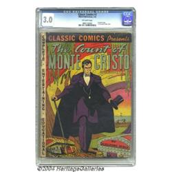 <B>Classic Comics #3 The Count of Monte Cristo - First Edition (Gilberton, 1942) CGC GD/VG 3.0 Off-white pages.</B></I> Original Edition. Overstreet 2004 GD 2.0 value = $142; VG 4.0 value = $284. <BR><BR><B>Important notice:</B> Heritage usually auctions material at the rate of 200-250 lots per hour. On some occasions eBay Live bid software or the Internet may not be able to keep up with the pace of the auction. We recommend placing a realistic absentee bid now as insurance to avoid disappointment. Occasionally the auctioneer may eliminate or reject an eBay Live bid, and the auctioneer may also reopen a lot after the close of the eBay live bidding (usually because we missed an audience bid), and may reject your bid even if it shows you as the winning bidder. By bidding via eBay Live, you agree that Heritage may award the lot to another bidder at its sole discretion under the circumstances described above or any other reasonable circumstances. Since eBay bids are not shown to us until we open the lot on the floor, we treat those bids just like floor bids. In most cases the floor responds before the eBay bid is presented to us, due to Internet lag time, so for consistency we have made it a policy that floor bids are always considered first over tie eBay live bids. Also please note that all Heritage lots purchased through eBay Live carry a 20% Buyer's Premium. Please make sure you read the Terms and Conditions before you bid. </span></font></tr></table></td></tr></table>