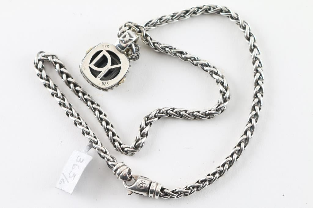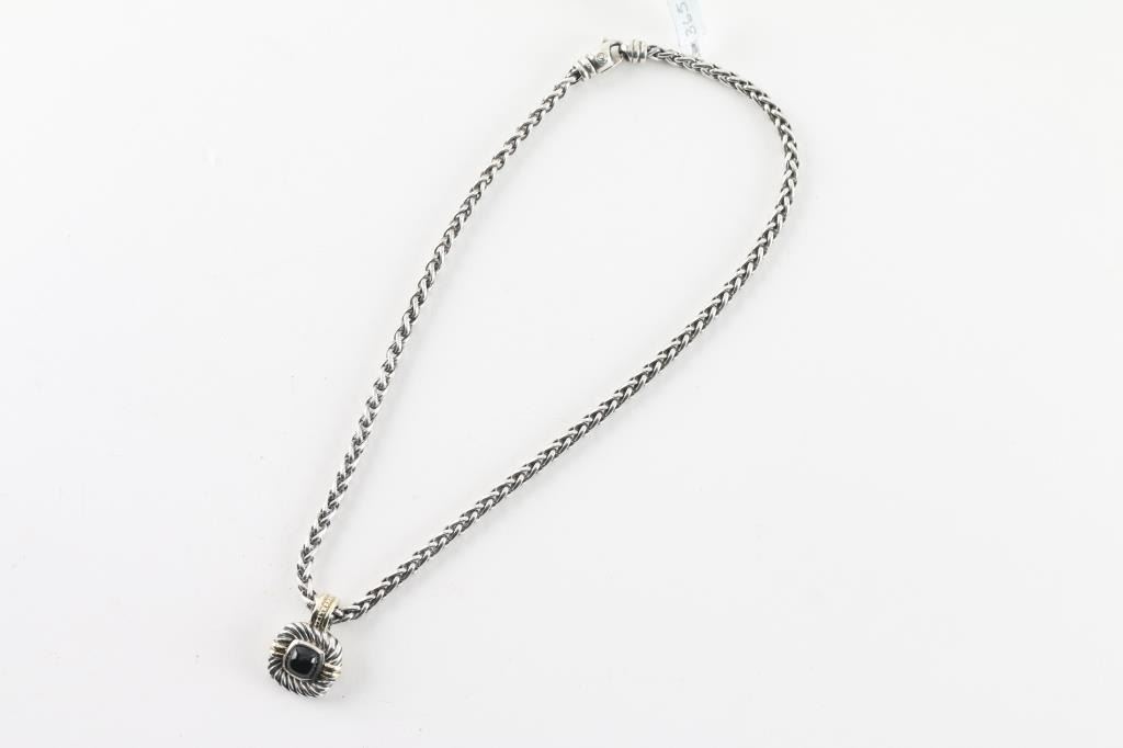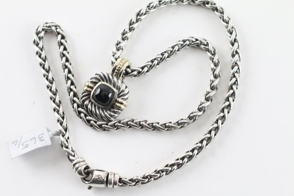 Heavy Sterling with 14K yellow gold accents with center onyx stone signed on back marked sterling. Total Weight is 11.84g