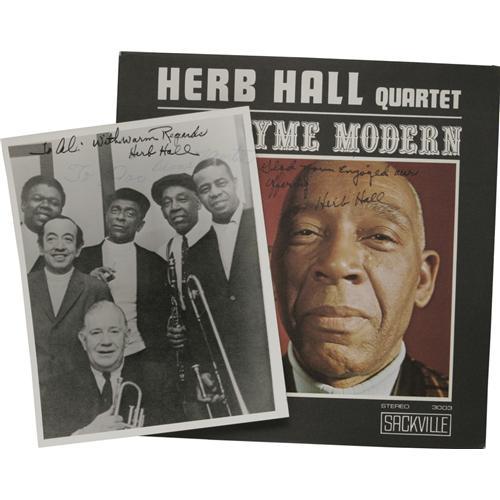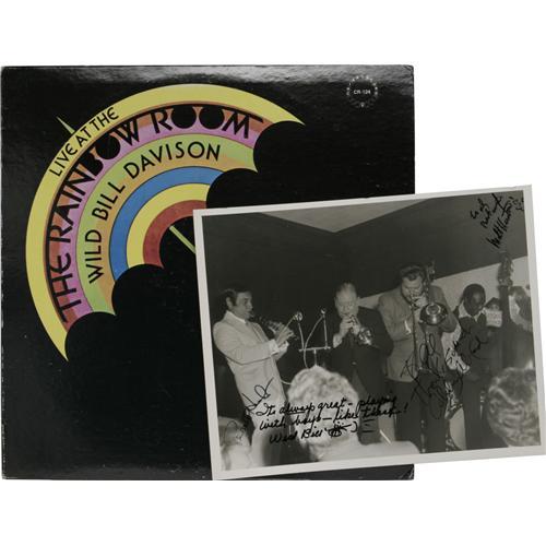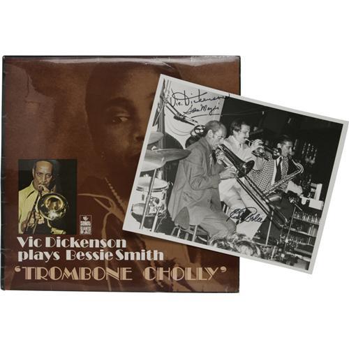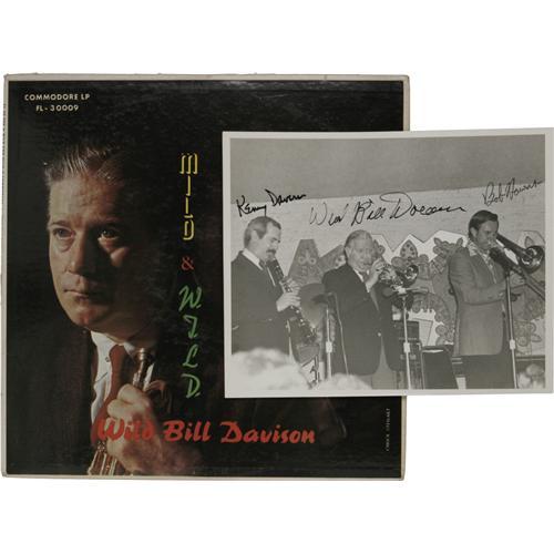 <B>Classic Jazz Autographed Record and Photo Group of 8.</B></I> Vic Dickenson "Trombone Cholly" autographed by Vic Dickenson, Frank Wess, Milt Hinton, and Jackie Williams (with autographed photo); Herb Hall Quartet "Old Tyme Modern" autographed by Herb Hall (with autographed photo); Wild Bill Davison "Live at the Rainbow Room" autographed by Wild Bill Davison, Ed Hubble, and Dottie Dodgion (with autographed photo), and "Mild & Wild" autographed Wild Bill Davison and Jack Lesberg (with autographed photo). <I>From the Al White Jazz Autograph Archive.</B></I><BR><BR><b>Shipping:</b> Recordings (<a target="_blank" href="http://www.heritageauctions.com/common/shipping.php">view shipping information</a>)