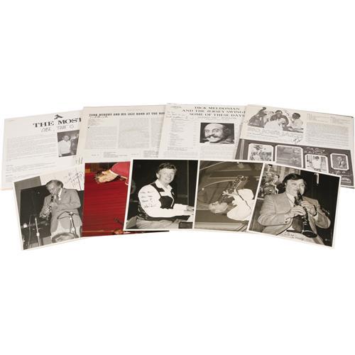 <B>Classic Jazz Signed Record and Photo Group.</B></I> "It don't mean a thing if it ain't got that swing - and these cats can swing!" Add their autographs to your collection. This lot features: "The Most - Abe That Is" (Annunciata Records AR 1051) with its cover signed by Abe Most and Ray Sherman (and a signed photo of Most); "Turk Murphy and his Jazz Band at the Roundtable" (Roulette SR 25076) with its cover signed by Turk Murphy and Pete Clute (and two signed photos of Murphy and Clute); "Dick Meldonian and the Jersey Swingers - Some of These Days" (MultiJazz Records 101) with its cover signed by Dick Meldonian and Derek Smith (and a signed photo of Meldonian); and "Joe Muryani and Friends - Big Joe's Jazz" (Mud Puppy MP-SLP-1220) with its cover signed by Joe Muryani, Bobby Pratt, and Eddie Locke (and a signed photo of Muryani). <I>From the Al White Jazz autograph archive.</B></I><BR><BR><b>Shipping:</b> Recordings (<a target="_blank" href="http://www.heritageauctions.com/common/shipping.php">view shipping information</a>)