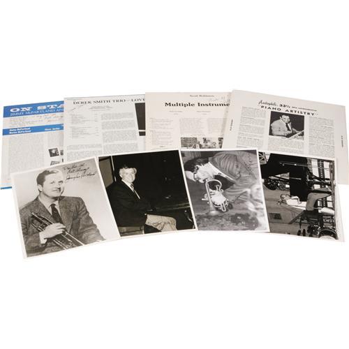 <B>Classic Jazz Signed Record and Photo Group. </B></I>Pianos and horns - this lot will make a sensational addition to any jazz aficionado's collection. This group lot includes: "On Stage - Jimmy McPartland and His All-Stars" (Jazzology J-16) with its cover signed by Derek Smith (and a signed photo of McPartland); "Derek Smith Trio - Love For Sale" (Progressive Records 7002) with its cover signed by Derek Smith (and a signed photo of Smith); "Scott Robinson - Multiple Instruments" (MultiJazz Records 101) with its cover signed by Scott Robinson (and a signed photo of Robinson); and "Piano Artistry by Knocky Parker" (Audiophile AP-28) with its cover signed by Knocky Parker (and a signed photo of Parker). <I>Accompanied by LOA from PSA/DNA. From the Al White Jazz autograph archive.</B></I><BR><BR><b>Shipping:</b> Other (oversized items, group lo (<a target="_blank" href="http://www.heritageauctions.com/common/shipping.php">view shipping information</a>)