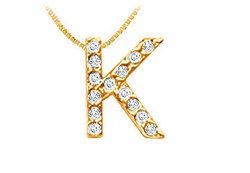 Fourteen brilliant-cut round diamonds are prong-set in a timeless classic letter K to wear your personality in a more simple yet elegant way. Made in 14K yellow gold this initial pendant has a total weight (TDW) of 0.15 ct.