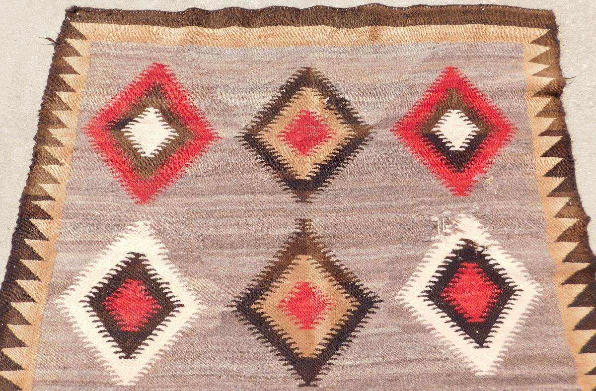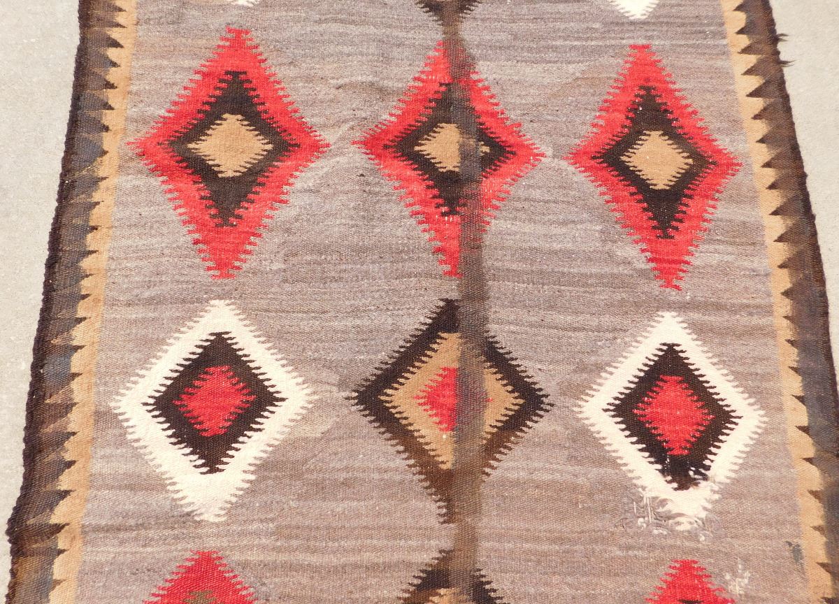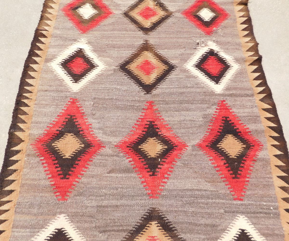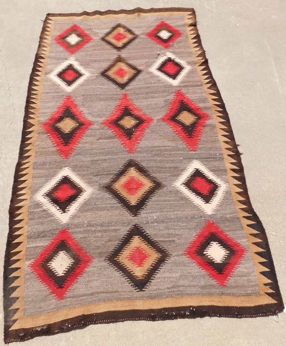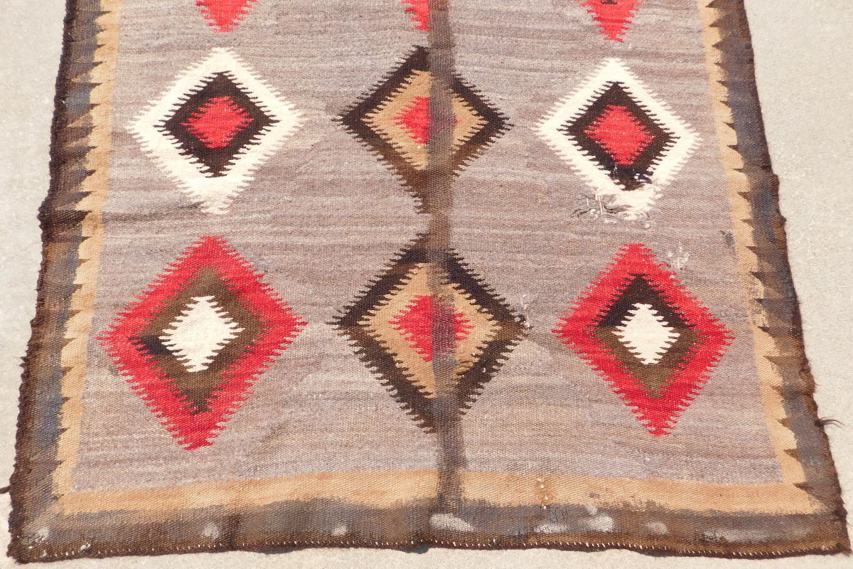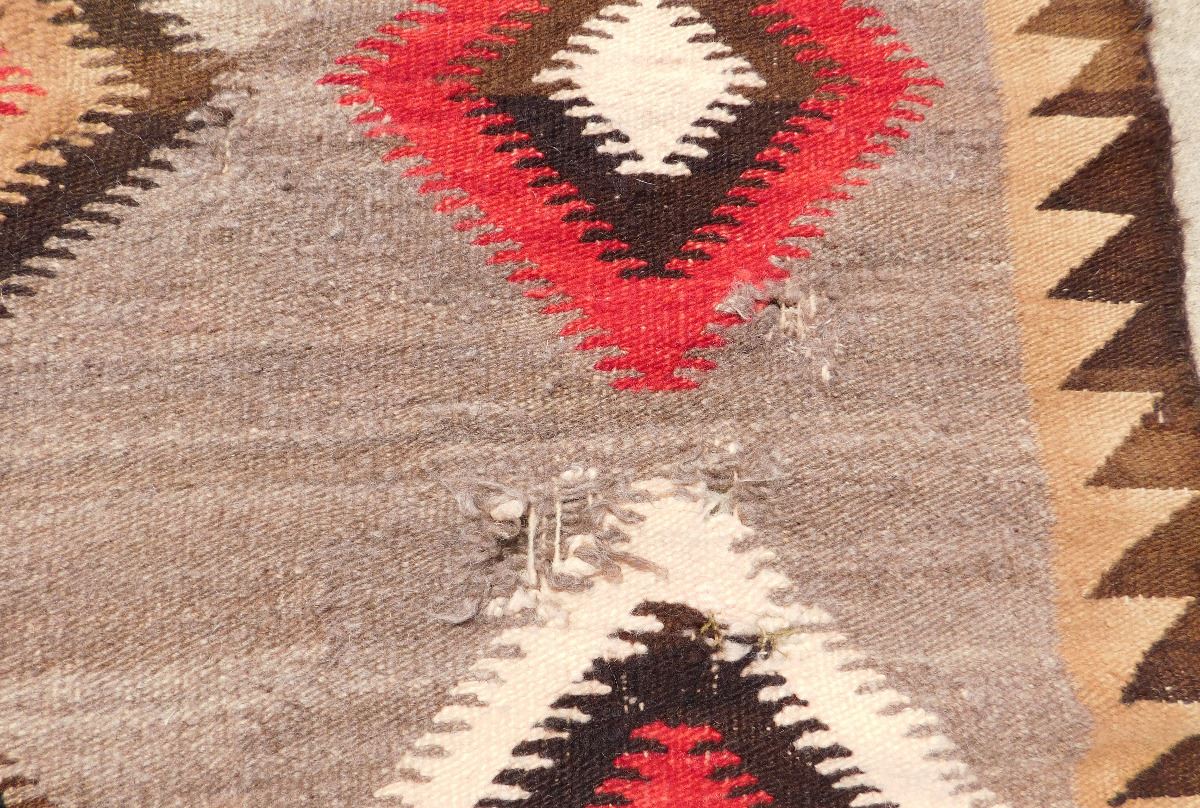 Classic Navajo Weaving, circa 1920s. This item is approx. 50 x 87 inches and is from Northern Arizona. Condition: There is some damage to this old Crystal rug, see images. Shipping: $32.50, heavy item.