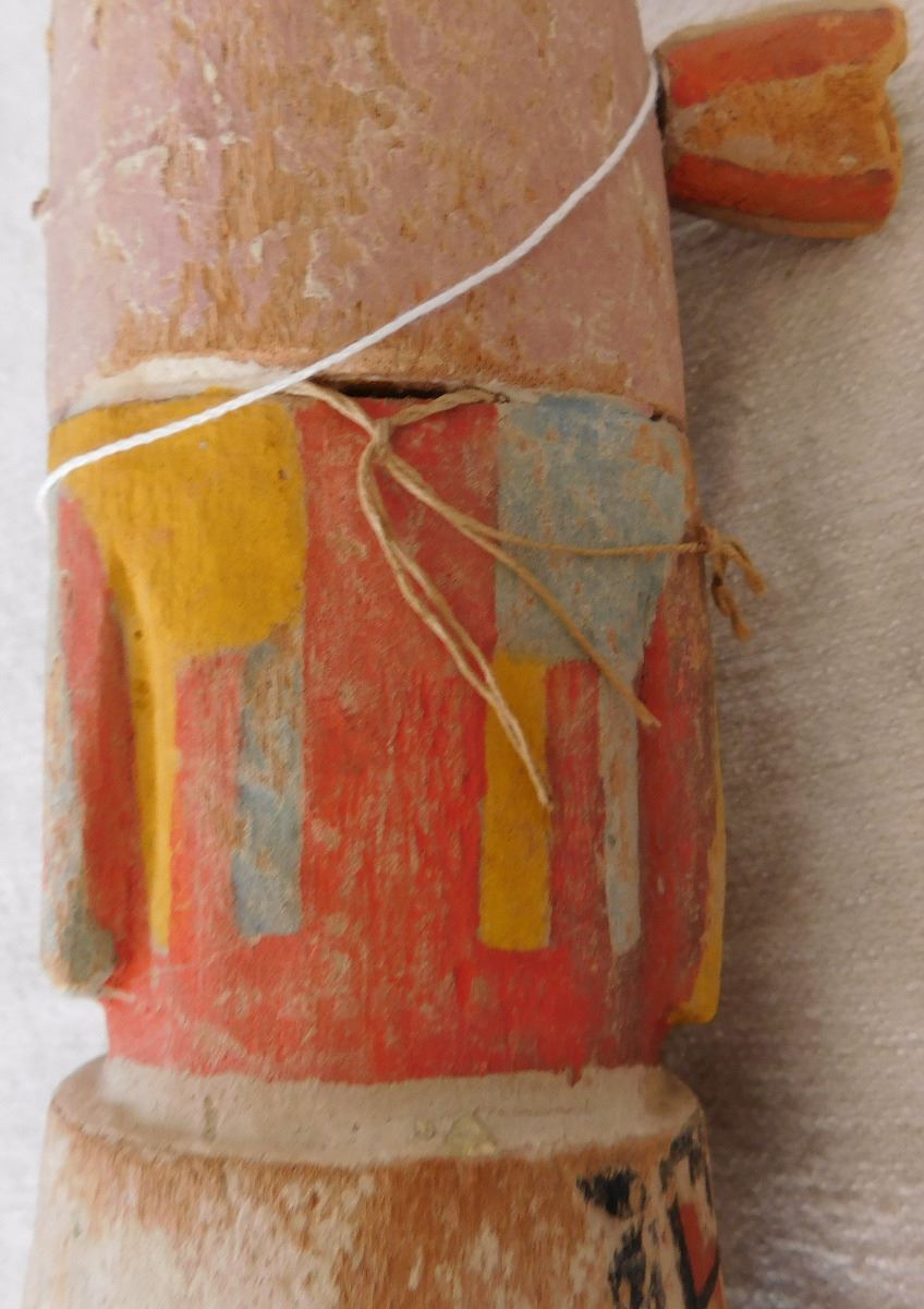 Classic Old Hopi Kachina, circa 1900s. Made of cottonwood and paint, this item measures 9 x 4 x 3 inches. Hopi, Northern-Central Arizona. Investment quality Kachina. Condition: Has an ear missing and some paint loss, see images. Shipping: $30.00 w/insurance.