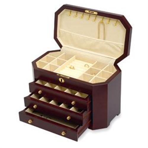 This Classic MAHOGANY Jewelry Chest is VERY well made and is an excellent GIFT for a Jewelry Collector.