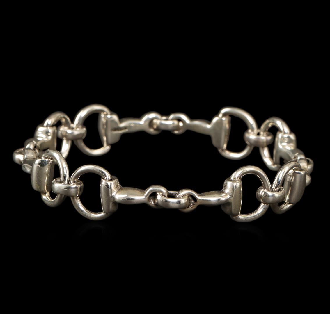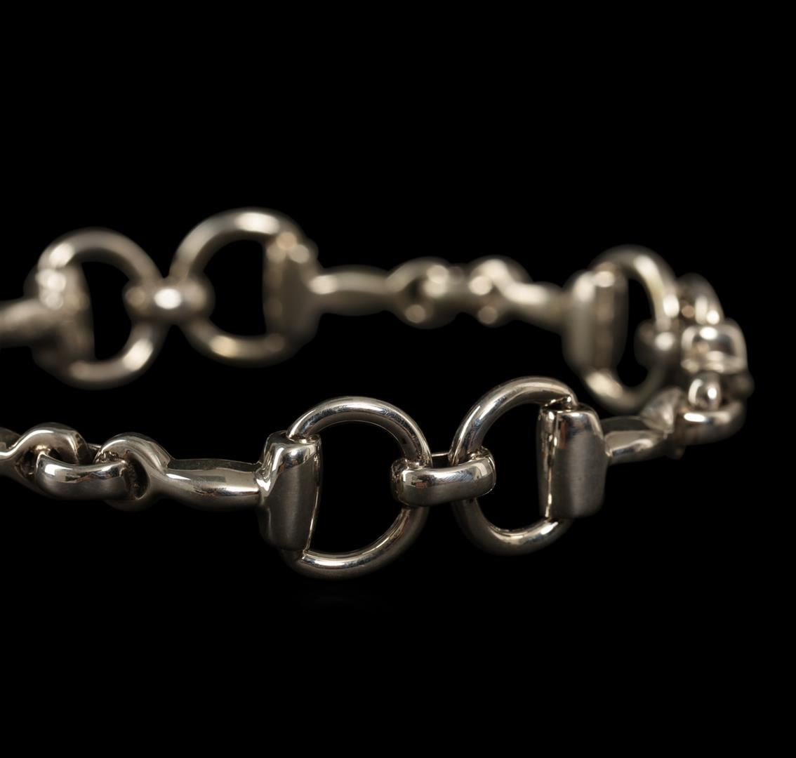 One of a kind high fashion sterling silver bracelet weighing 36.9 grams. This sterling silver promises a lasting shine.