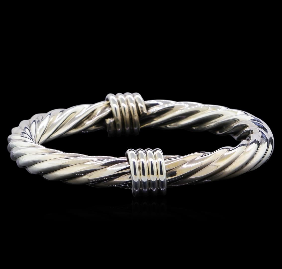 One of a kind high fashion sterling silver bracelet weighing 22.4 grams. This sterling silver promises a lasting shine.