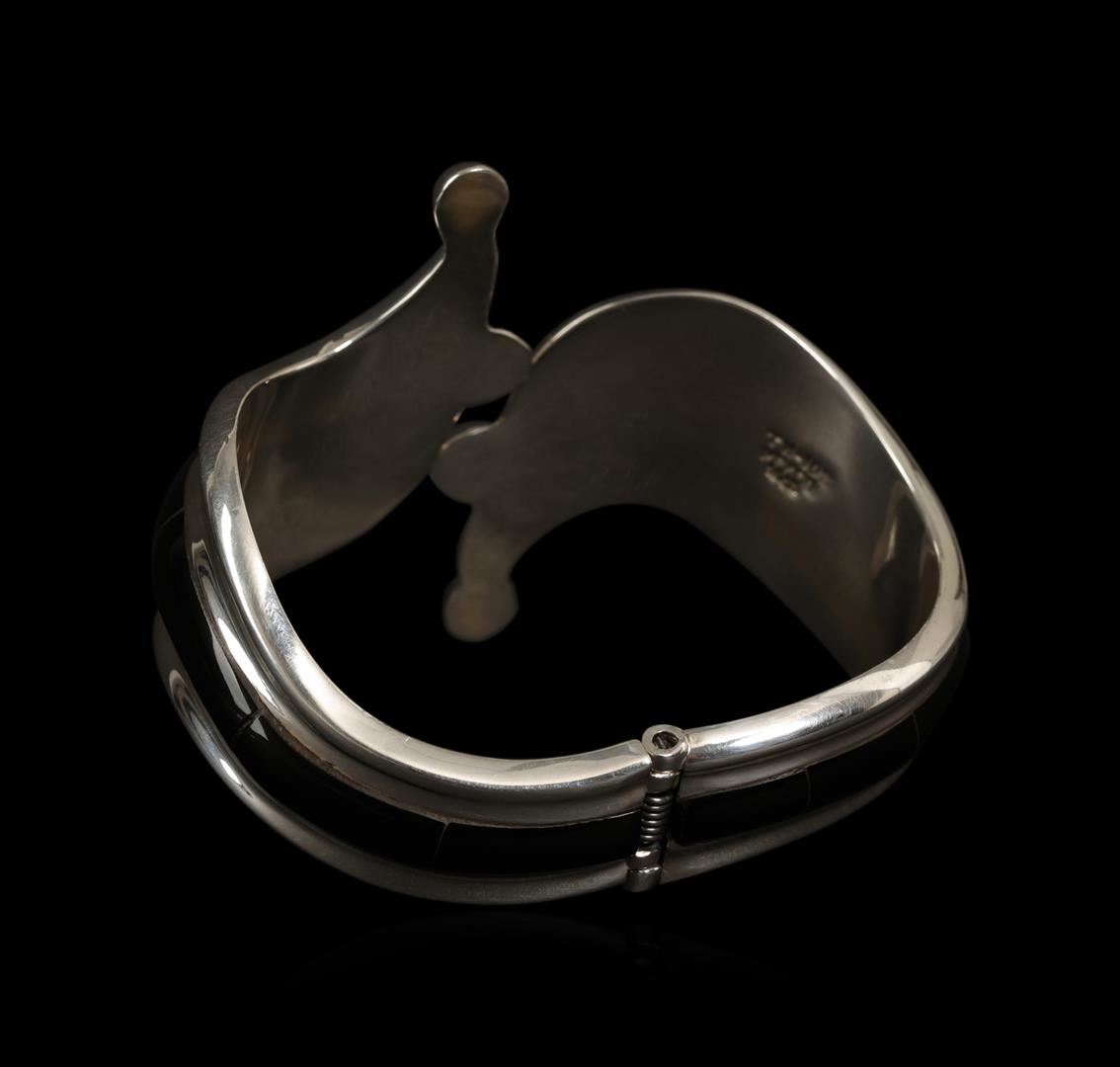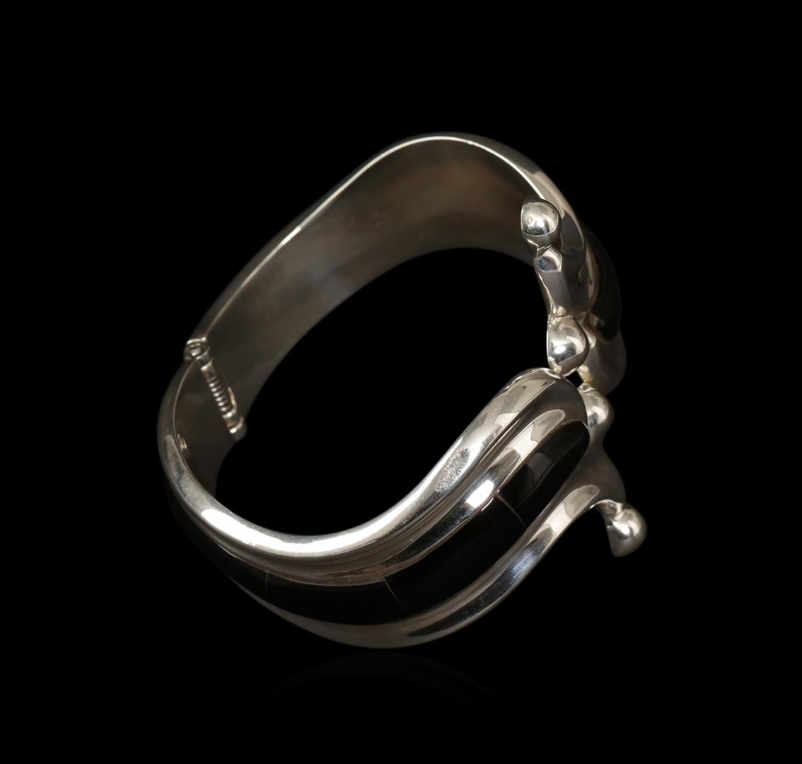 One of a kind high fashion sterling silver bracelet weighing 61.5 grams. This sterling silver promises a lasting shine.