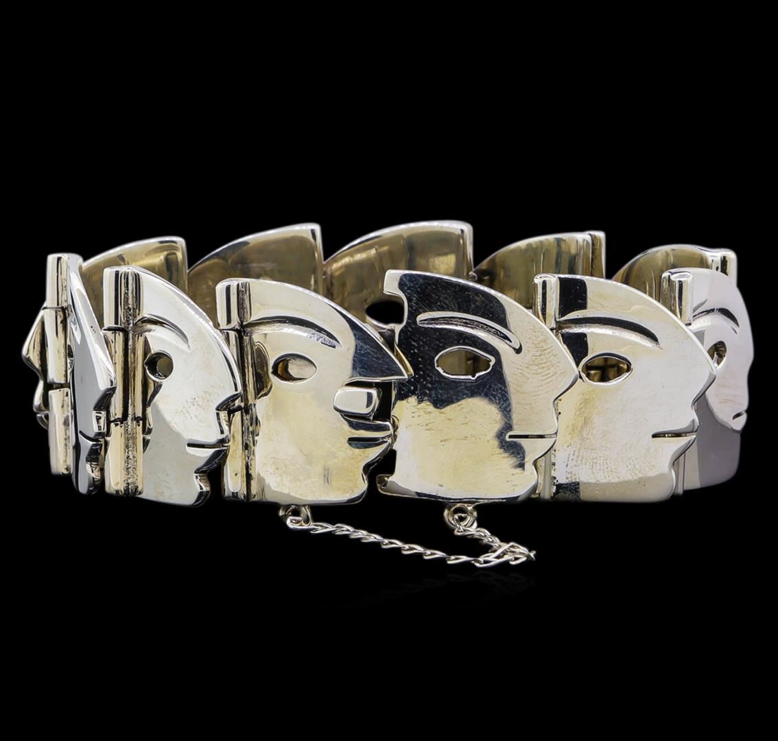 One of a kind high fashion sterling silver bracelet weighing 91.1 grams. This sterling silver promises a lasting shine.