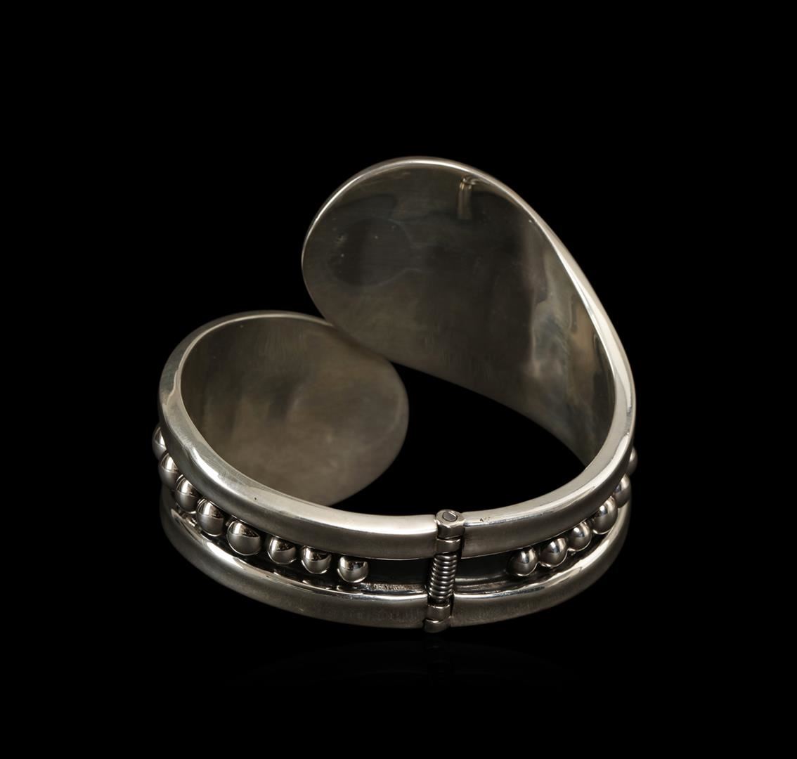One of a kind high fashion sterling silver bracelet weighing 65 grams. This sterling silver promises a lasting shine.