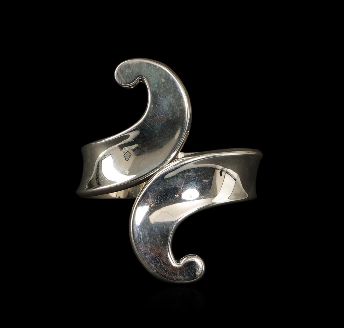 One of a kind high fashion sterling silver bracelet weighing 58.3 grams. This sterling silver promises a lasting shine.