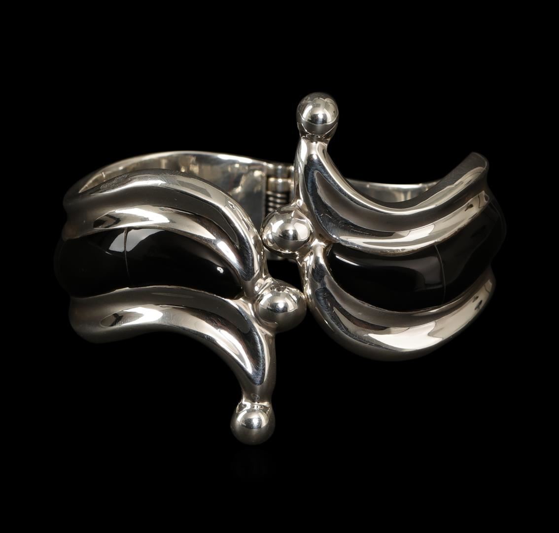 One of a kind high fashion sterling silver bracelet weighing 61.5 grams. This sterling silver promises a lasting shine.