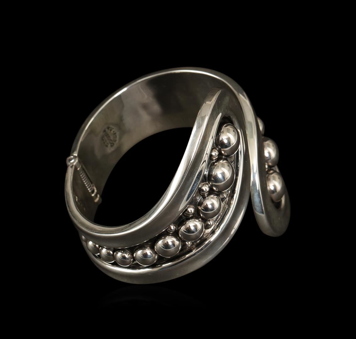 One of a kind high fashion sterling silver bracelet weighing 65 grams. This sterling silver promises a lasting shine.