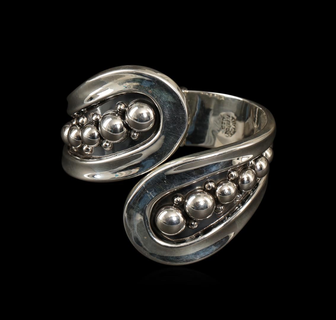 One of a kind high fashion sterling silver bracelet weighing 65 grams. This sterling silver promises a lasting shine.