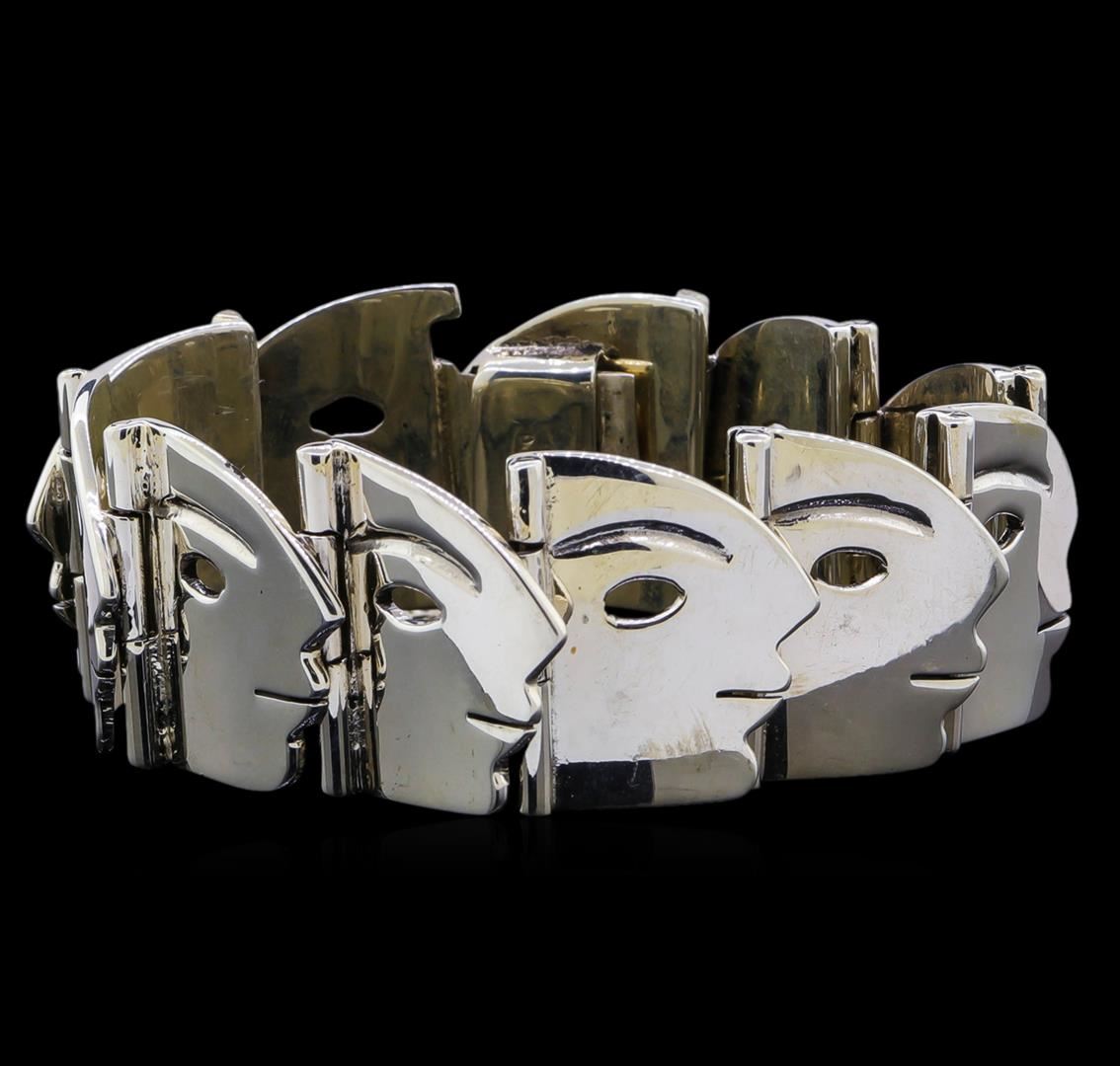 One of a kind high fashion sterling silver bracelet weighing 91.1 grams. This sterling silver promises a lasting shine.