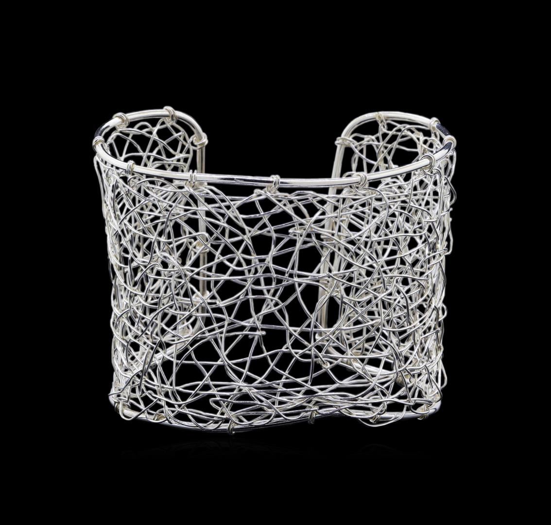One of a kind high fashion sterling silver cuff bracelet weighing 27.1 grams. This sterling silver promises a lasting shine.