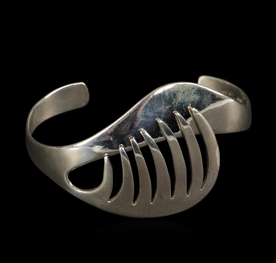 One of a kind high fashion sterling silver cuff bracelet weighing 24.8 grams. This sterling silver promises a lasting shine.