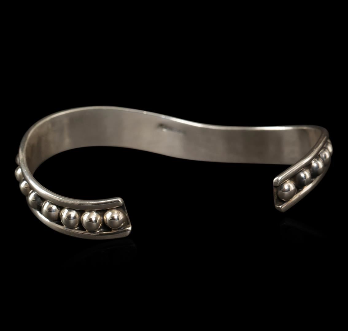 One of a kind high fashion sterling silver cuff bracelet weighing 18.9 grams. This sterling silver promises a lasting shine.