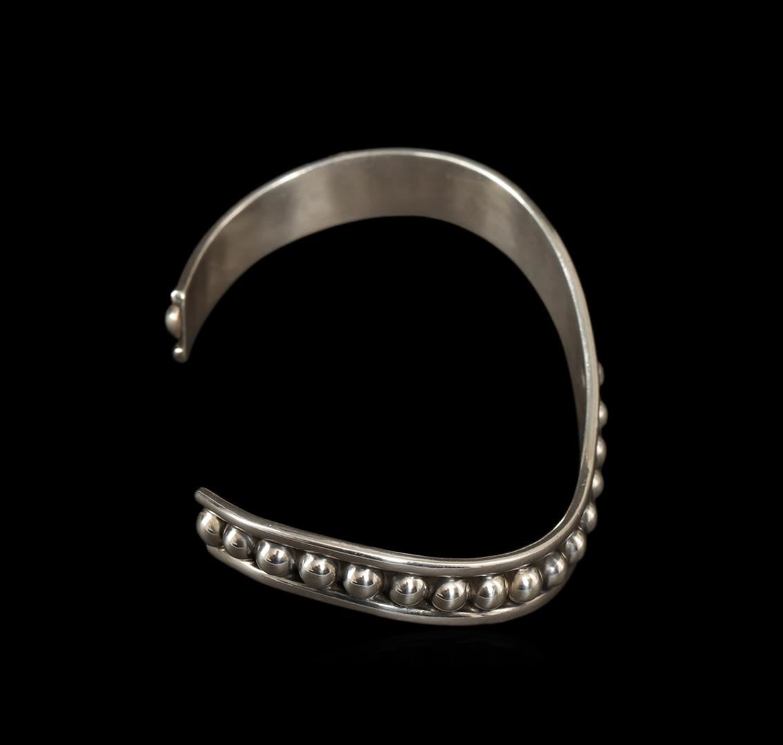 One of a kind high fashion sterling silver cuff bracelet weighing 18.9 grams. This sterling silver promises a lasting shine.