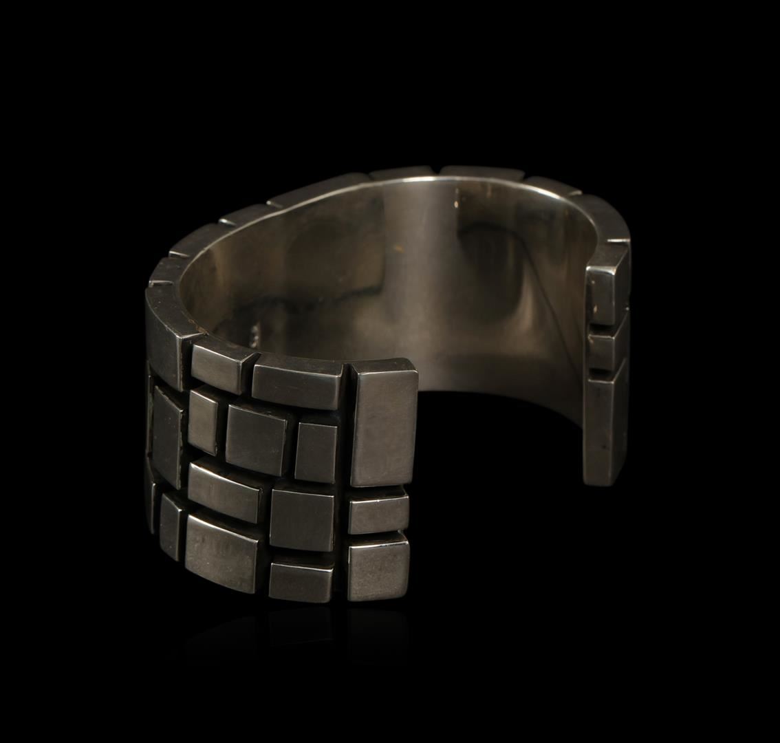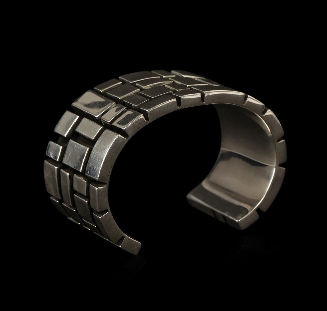 One of a kind high fashion sterling silver cuff bracelet weighing 78.9 grams. This sterling silver promises a lasting shine.