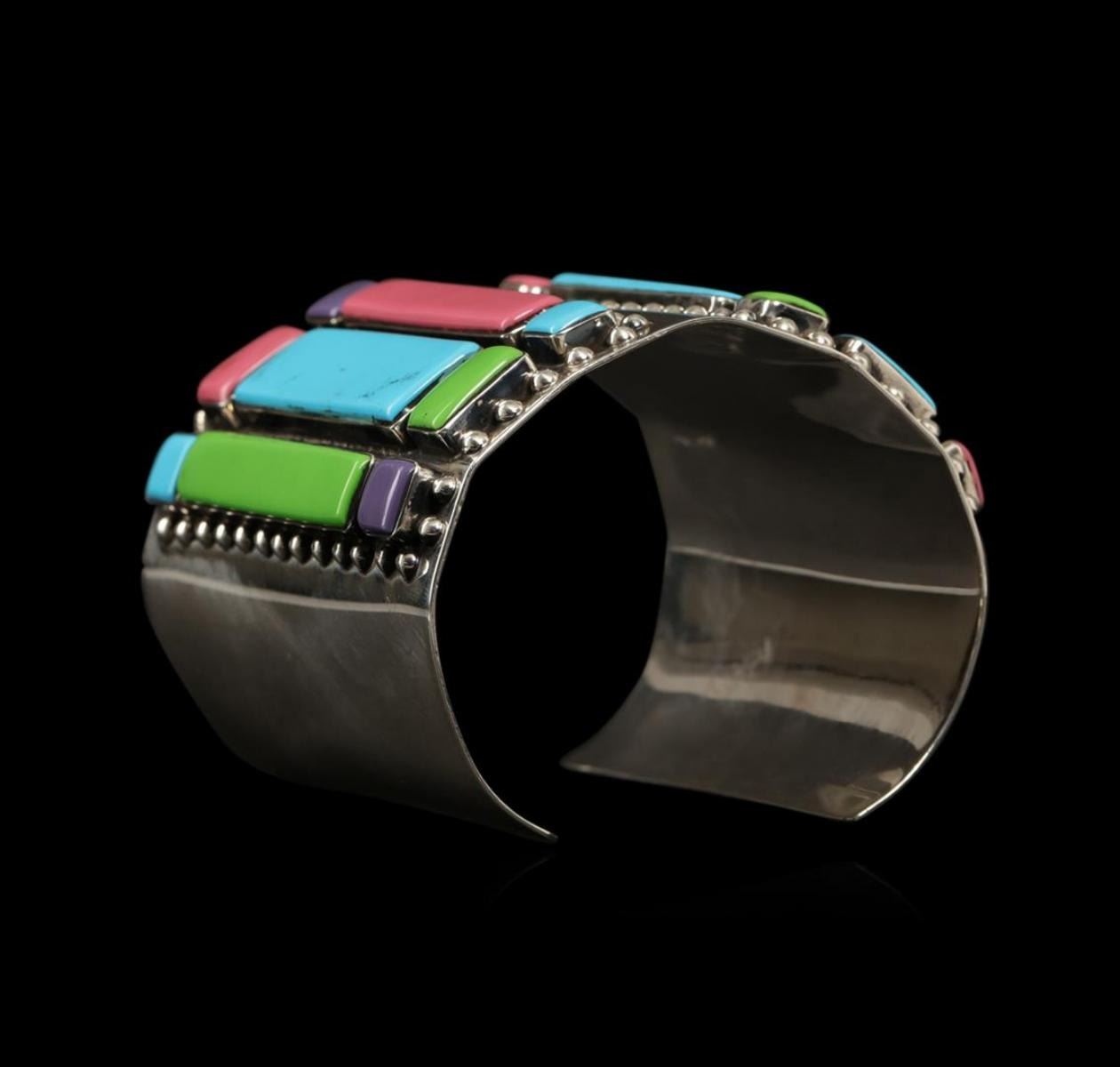 One of a kind high fashion sterling silver cuff bracelet weighing 130.5 grams. This sterling silver promises a lasting shine.