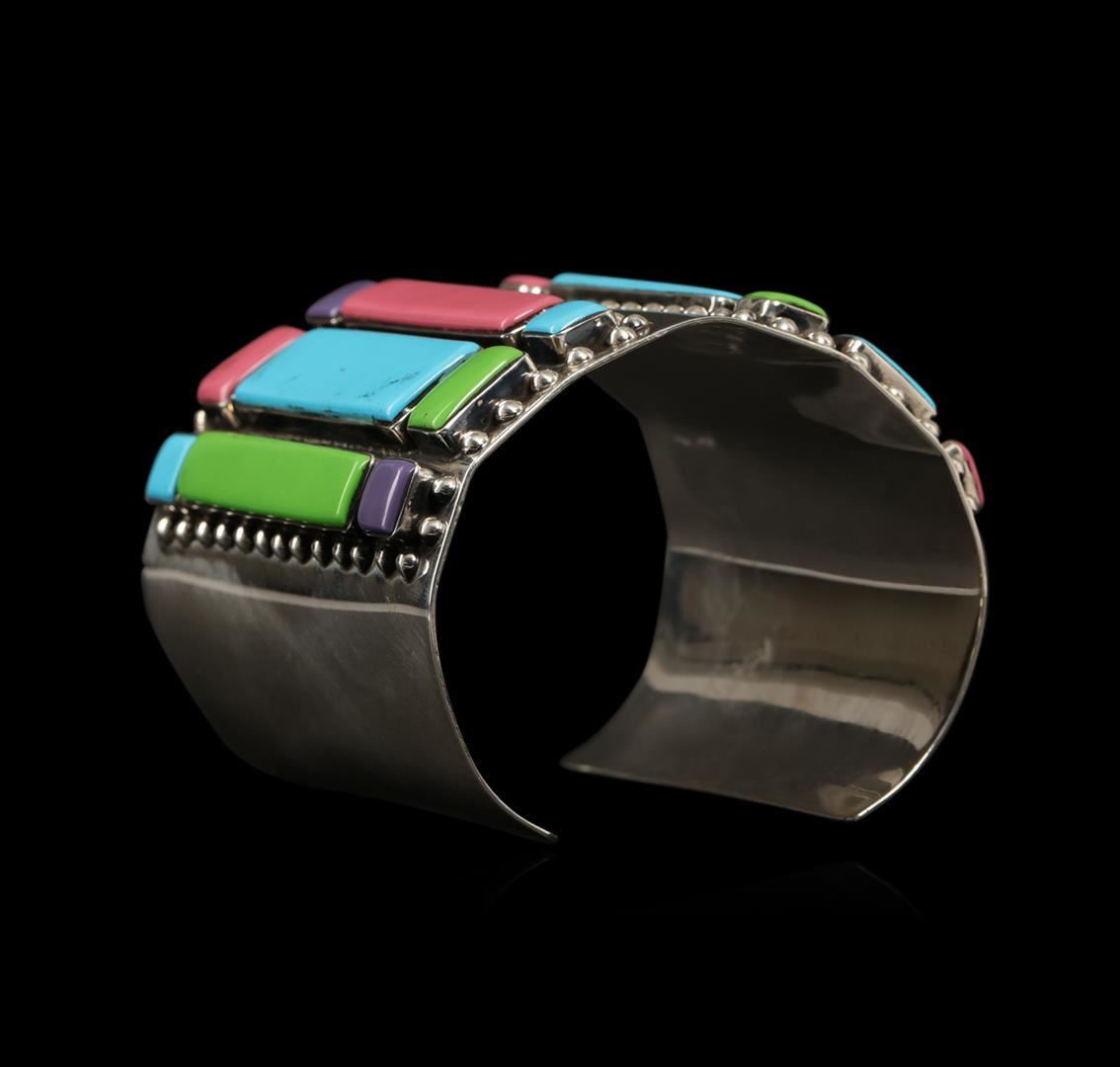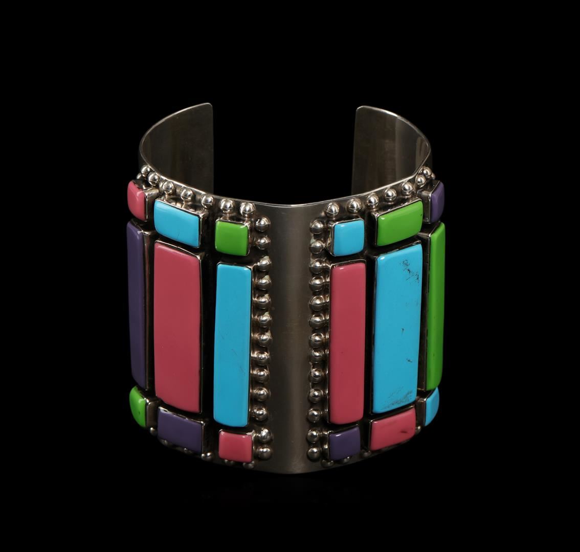 One of a kind high fashion sterling silver cuff bracelet weighing 130.5 grams. This sterling silver promises a lasting shine.