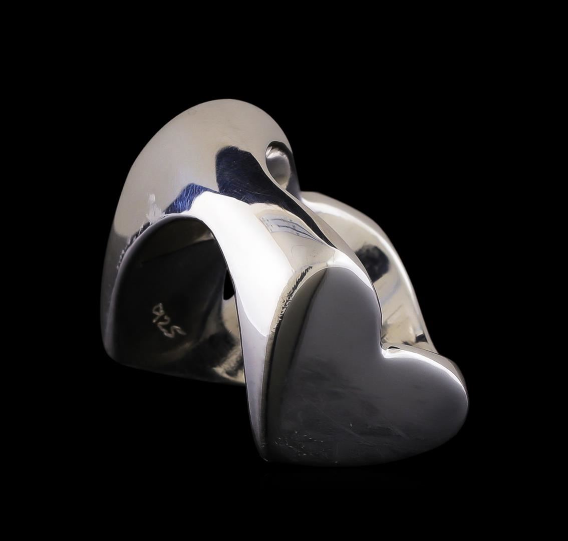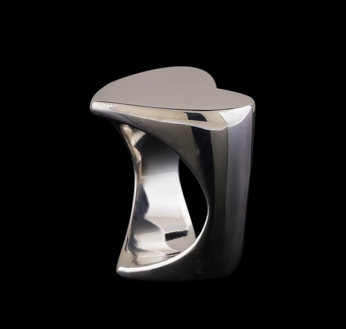 One of a kind high fashion sterling silver heart ring weighing 6.3 grams. This sterling silver promises a lasting shine.