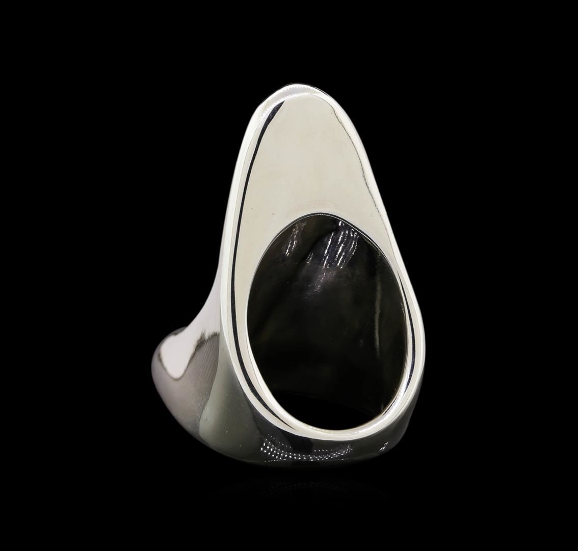 One of a kind high fashion sterling silver ring weighing 23.2 grams. This sterling silver promises a lasting shine.