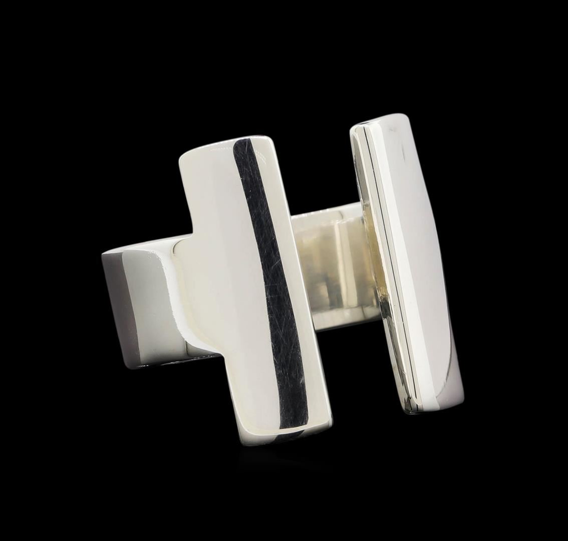 One of a kind high fashion sterling silver ring weighing 14 grams. This sterling silver promises a lasting shine.