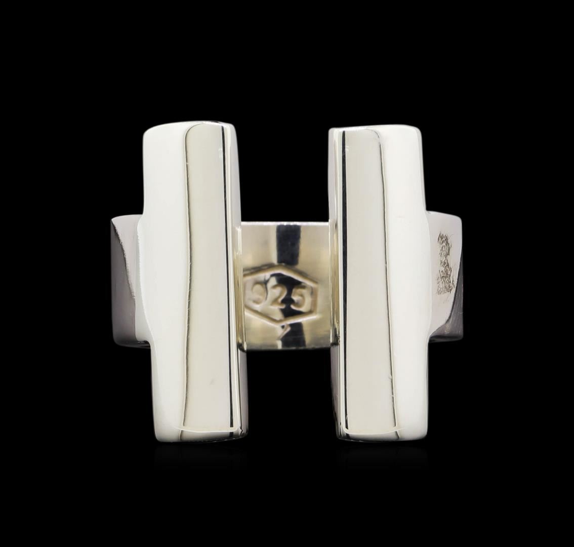 One of a kind high fashion sterling silver ring weighing 14 grams. This sterling silver promises a lasting shine.