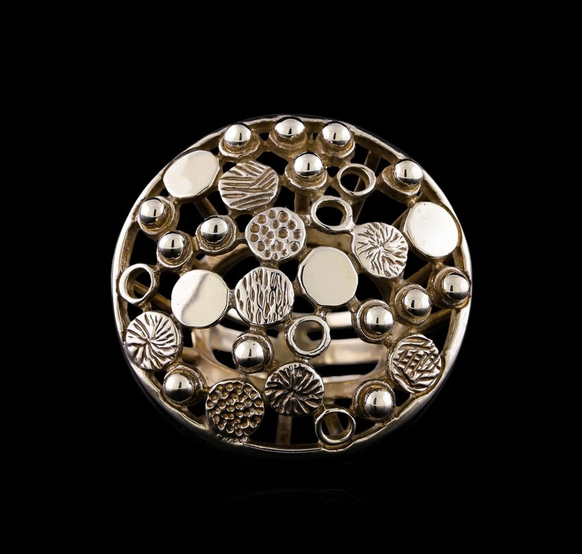 One of a kind high fashion sterling silver ring weighing 20.9 grams. This sterling silver promises a lasting shine.